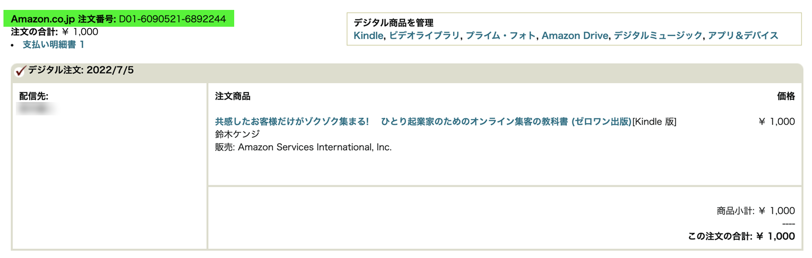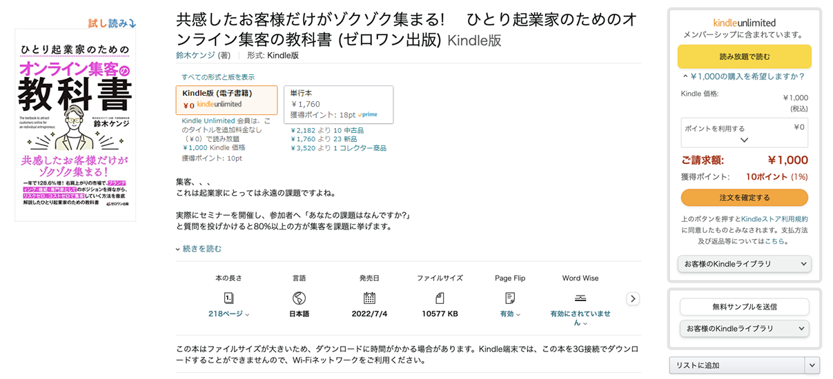 Amazonで1冊Kindle版を購入